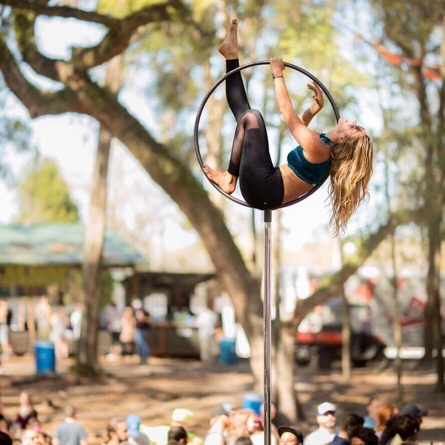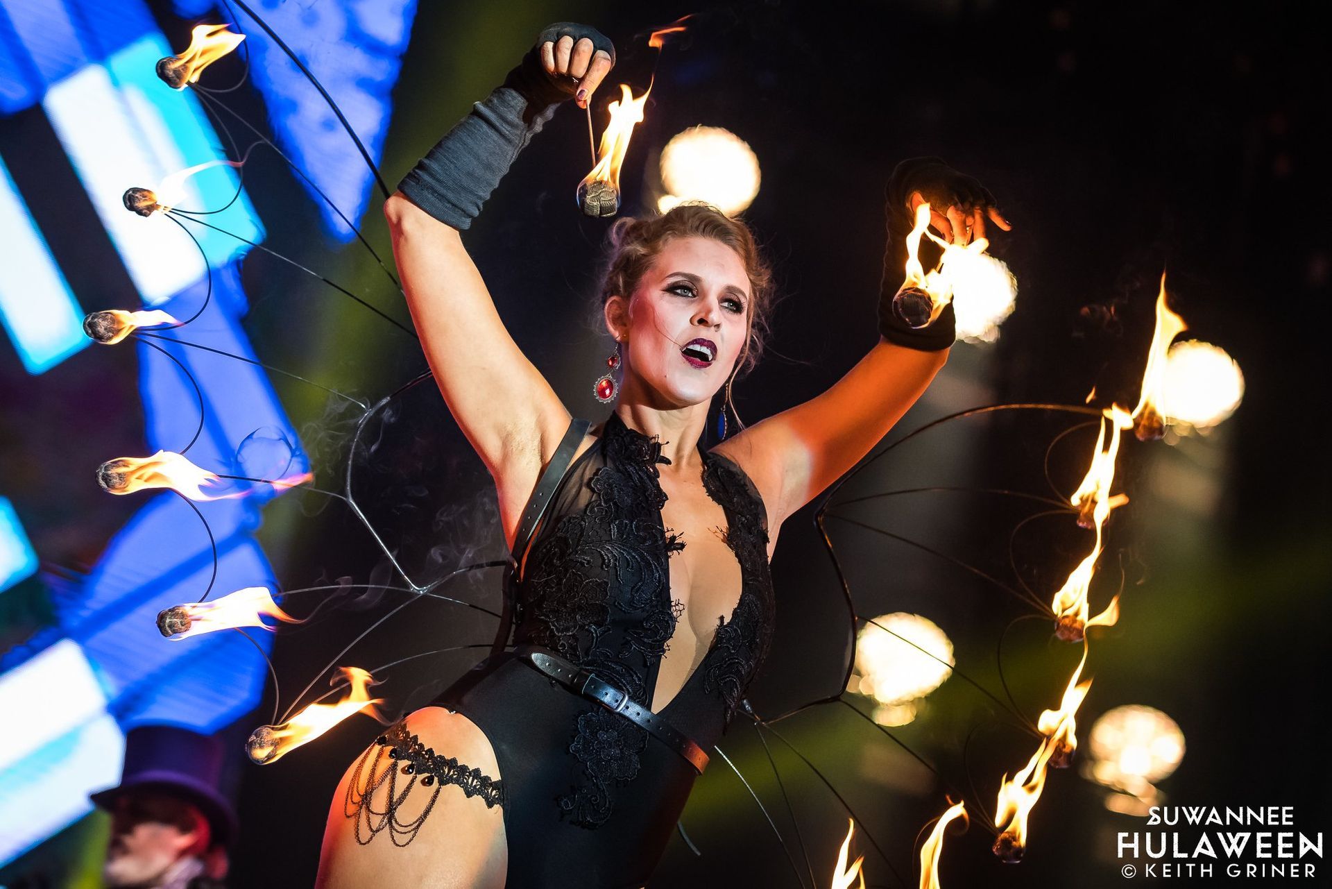 Ground-based artistry meets dynamic acrobats in a stunning display.